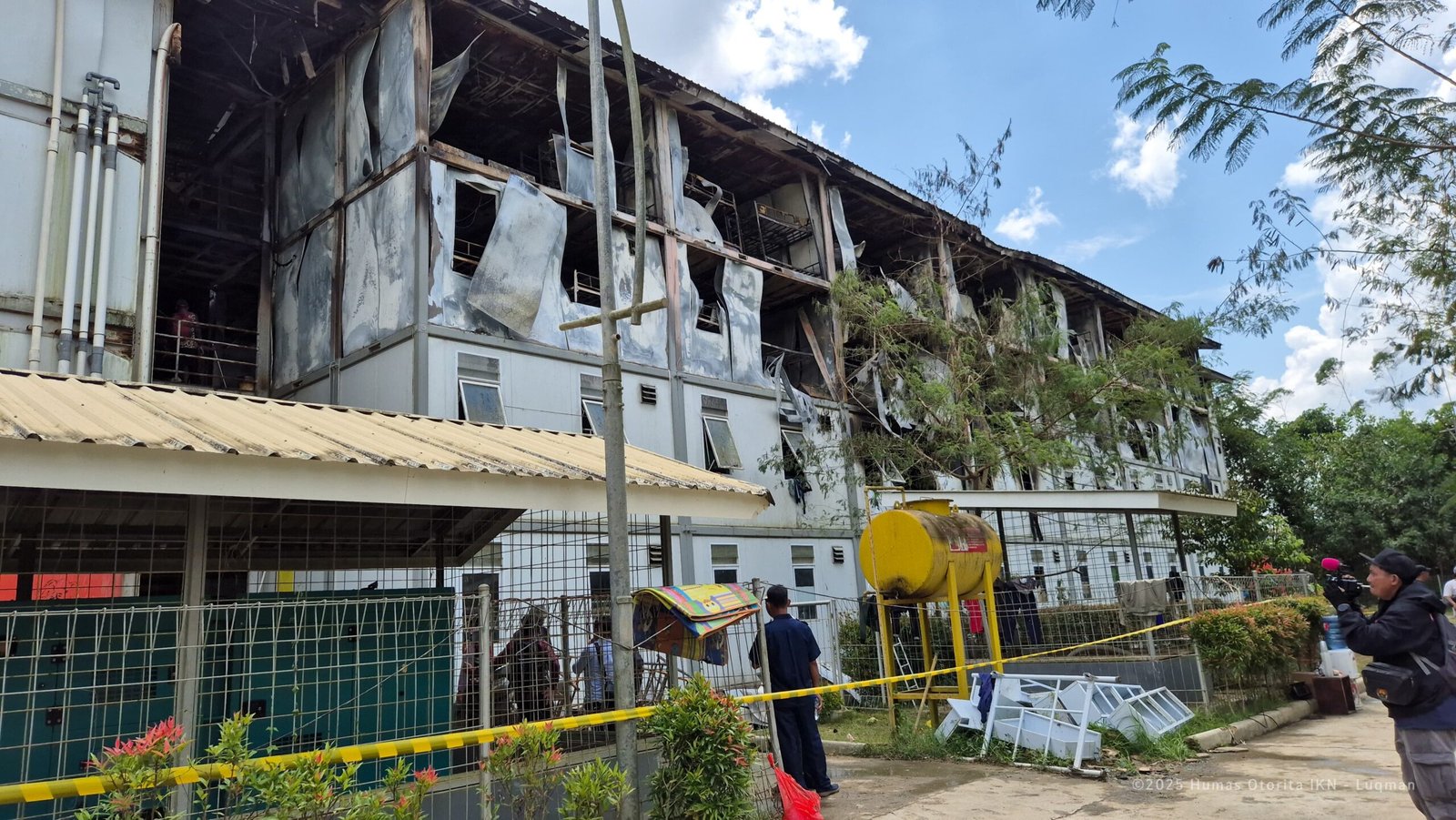 Area di sekitar kamar juga terdampak panas dan air pemadaman. Estimasi kerugian masih didata oleh OIKN bersama pengelola gedung.