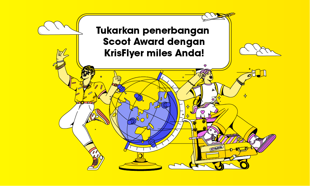 Penukaran tiket menggunakan KrisFlyer miles kini tersedia melalui situs resmi dan aplikasi seluler Scoot. Informasi lengkap terkait tarif penukaran dan syarat ketentuan dapat diakses di www.flyscoot.com. (ads/pr)