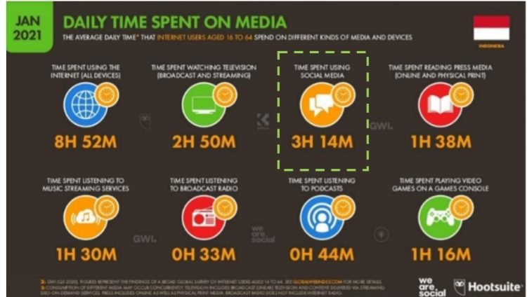 Perkembangan teknologi dan informasi didukung oleh pertumbuhan pengguna mobile device, internet dan media sosial yang signifikan. Pada tahun 2021, jumlah penggunaan mobile device, pengguna internet dan media sosial di Indonesia berjumlah 345,3 Juta (125,6% dari penduduk Indonesia), 202,6 Juta (73,7%) dan 170 Juta (61,8%).